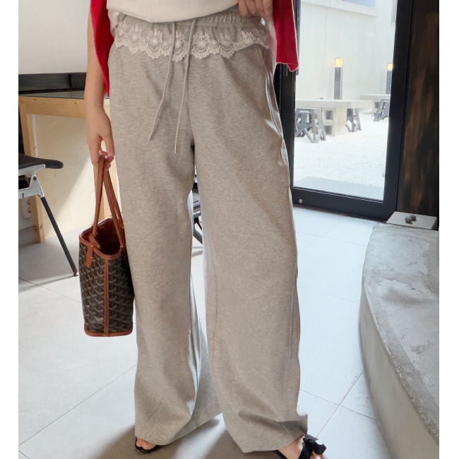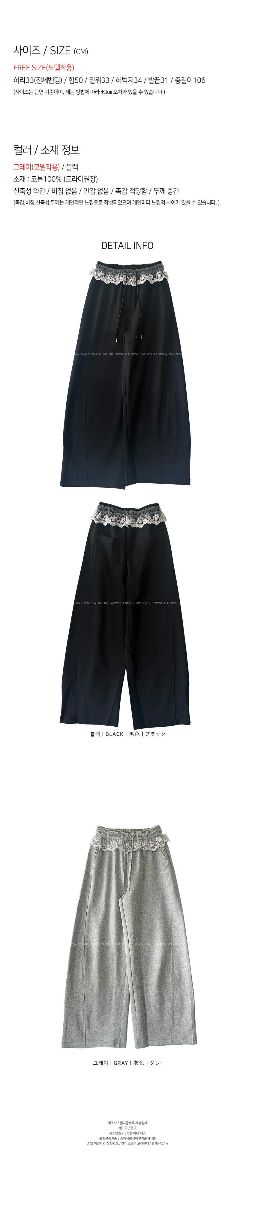 귀여운 무드의 트레이닝 팬츠를 소개해드려요,가벼운 외출복부터 꾸안꾸룩으로어디에나 데일리하게 즐기기 좋은 제품인데요,부드러운 면소재로신축성이 좋아 편안한 착용감을 느끼실 수 있구요,허리전체가 밴딩으로 제작되어안정감있는 실루엣을 연출해주며,레이스가 더해져 러블리한 무드를 연출해드립니다편안하면서도 매일매일 입기 좋은 트레이닝팬츠로사심담아 추천드릴게요,컬러는 그레이,블랙 총 2컬러로 준비해보았구요사이즈는 프리사이즈로 25-30사이즈까지 추천해드리며,정확한 사이즈는 상세표를 참고해주세요!