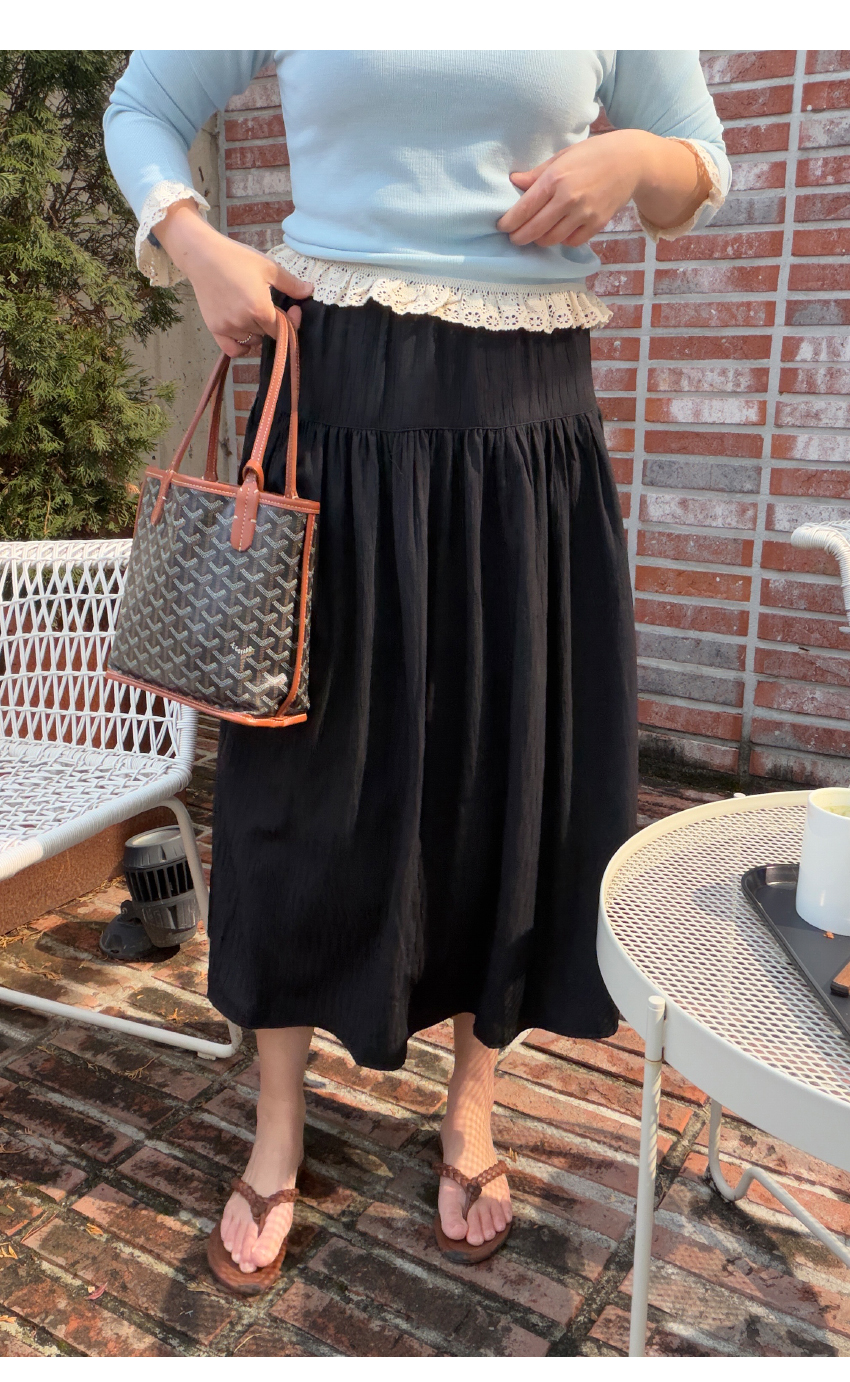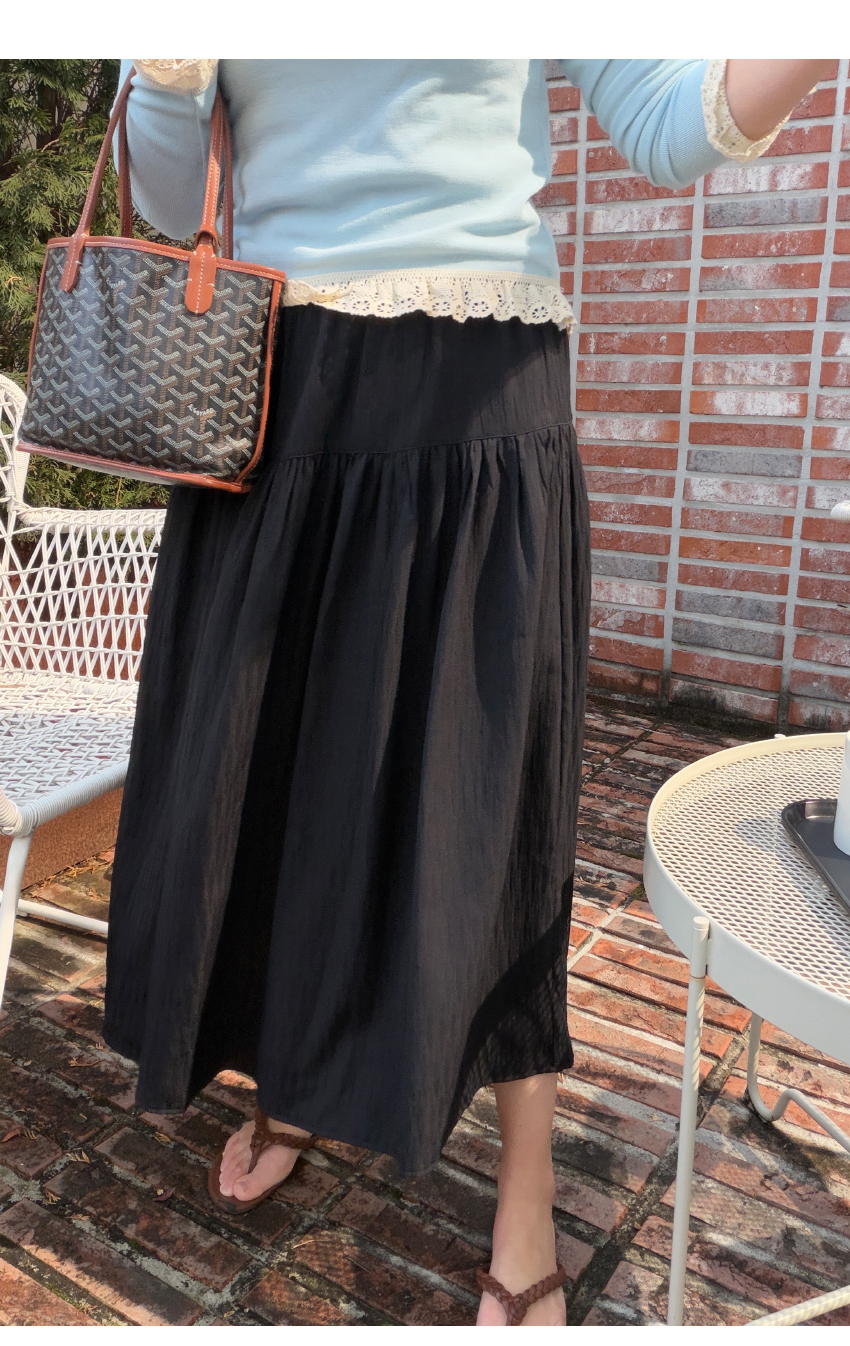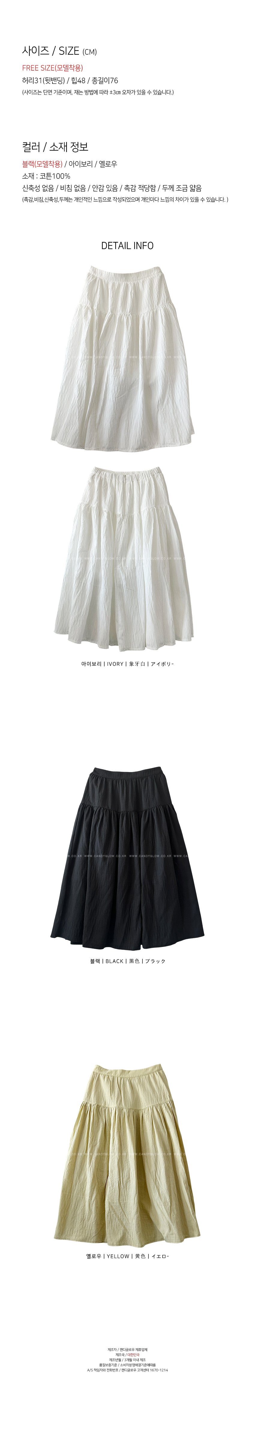 매시즌 사랑받는 훌라인 스커트를 소개해드려요,차분하면서도 데일리해 자주 손이가는 제품인데요,롱한 기장에 A라인으로 떨어지는 실루엣으로네추럴하면서도 멋스럽게 매치하기 좋구요,허리뒷밴딩으로 편안한 착용감을 선사해드립니다자유로운 활동성을 보장해드리며,유행에 구애없는 데일리템으로 사심담아 추천드릴게요,컬러는 블랙,옐로우,아이보리 총 3컬러로 진행되며,사이즌는 프리사이즈로 25-30사이즈까지 추천드릴게요사이즈는 개인마다 차이가 있으니,정확한 사이즈는 상세표를 참고해주세요!