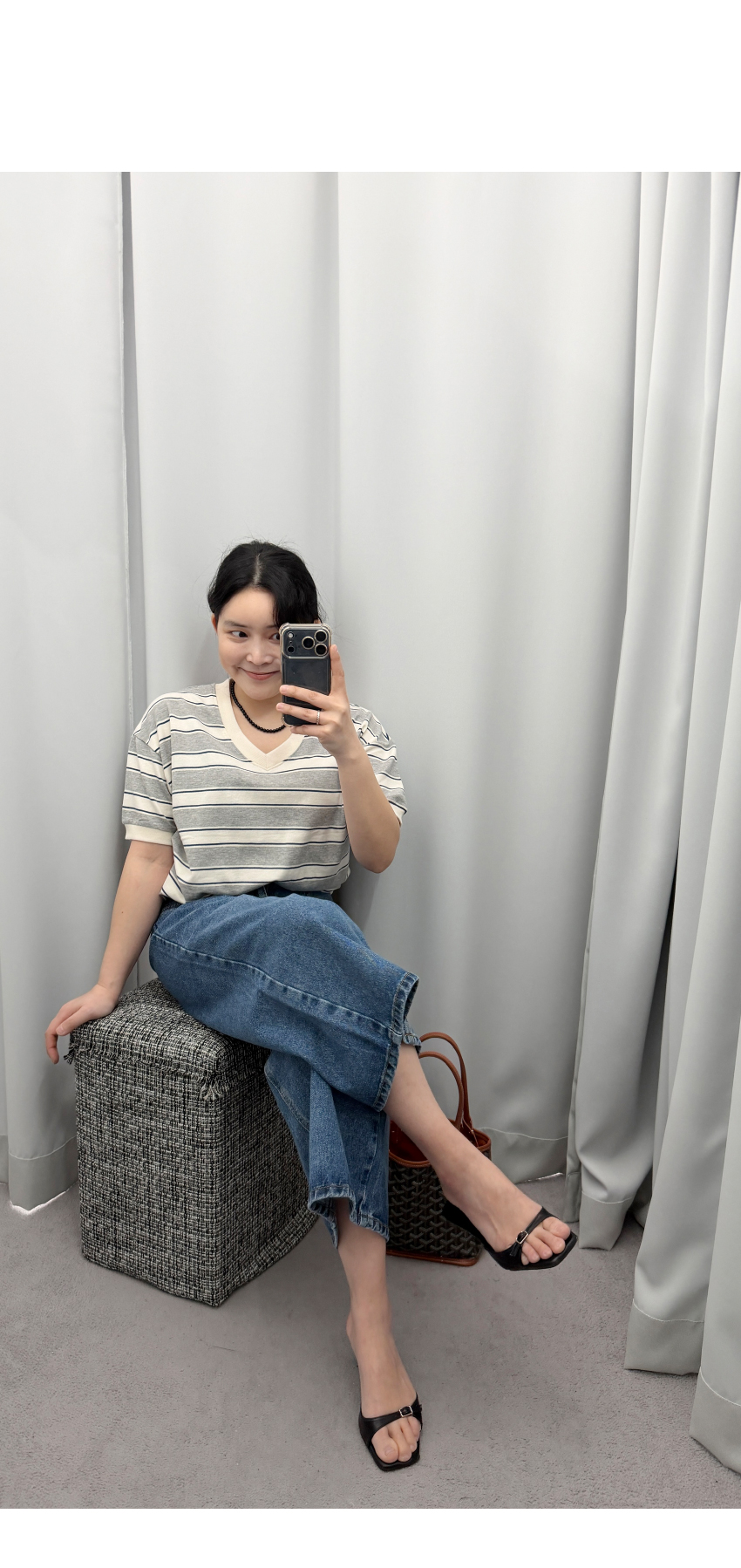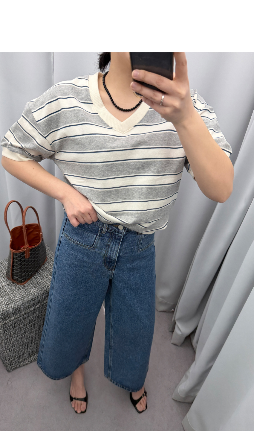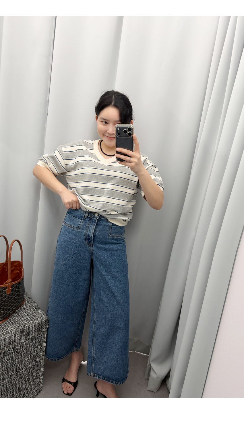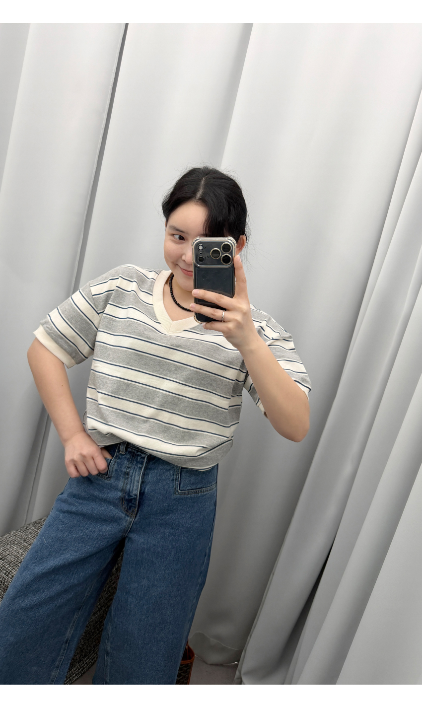너무 깊지않은 브이넥 라인이 은은한 포인트가 되어드려요,