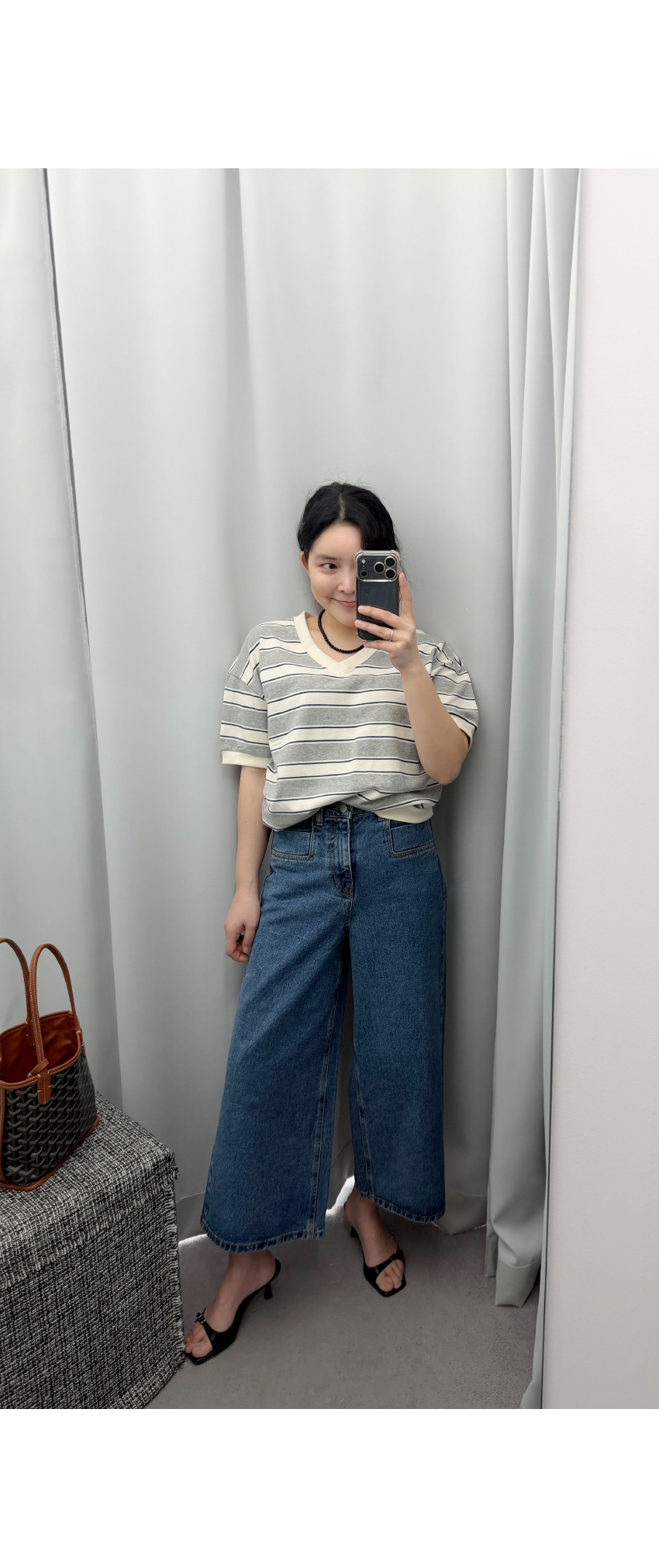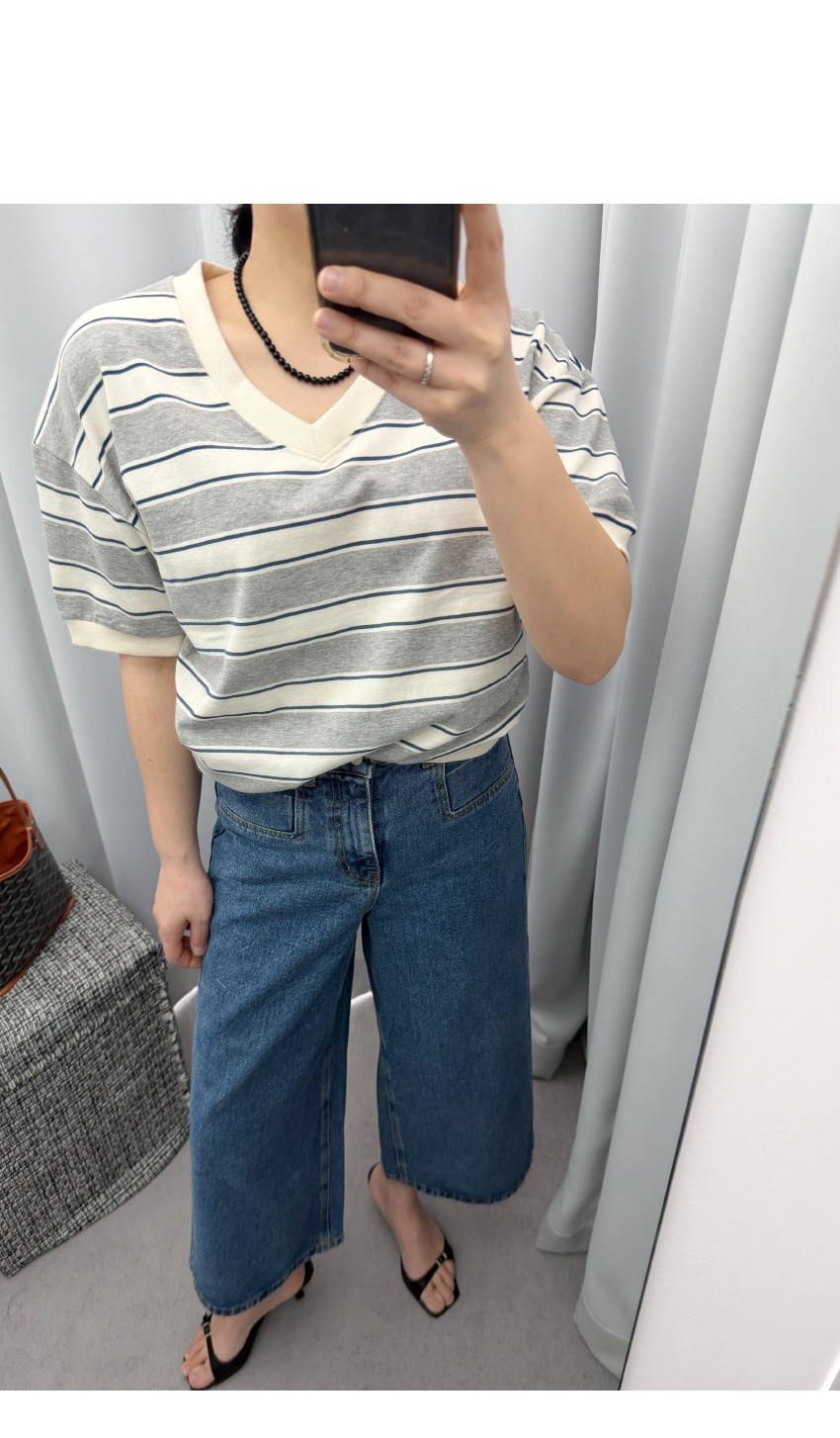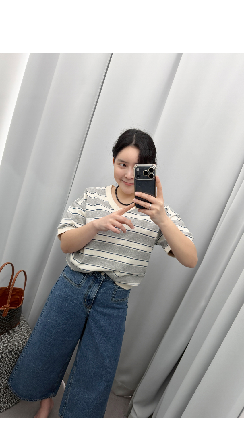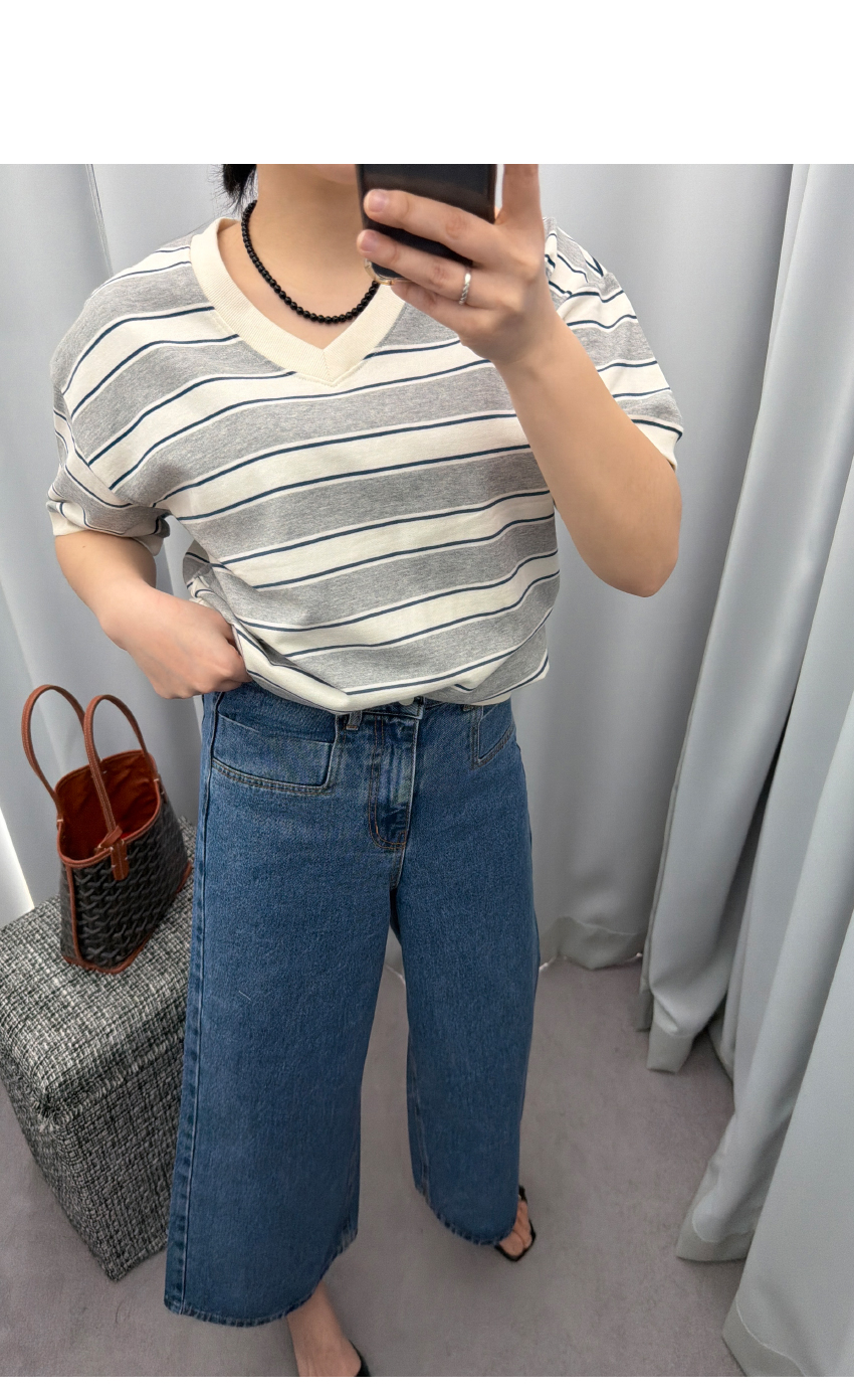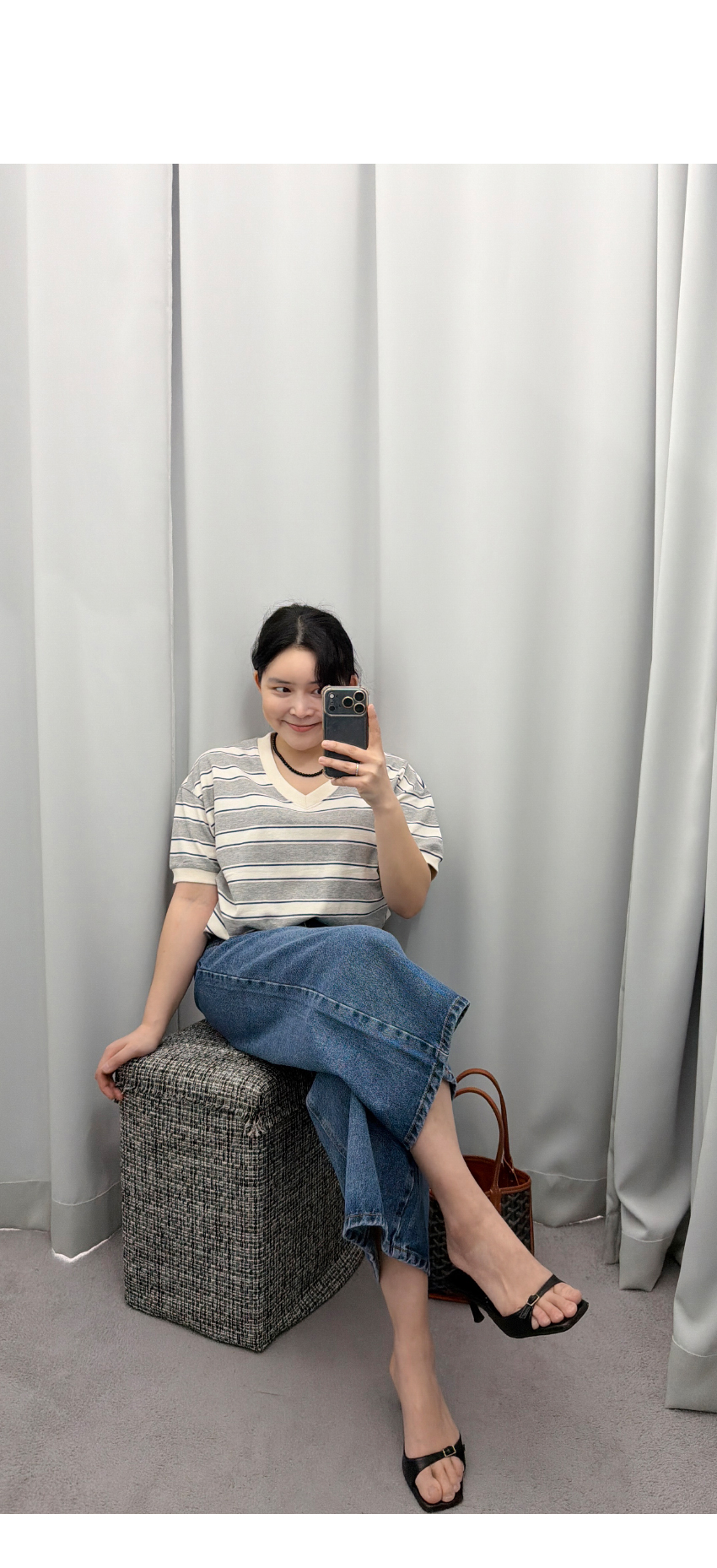 너무 깊지않은 브이넥 라인이 은은한 포인트가 되어드려요,
