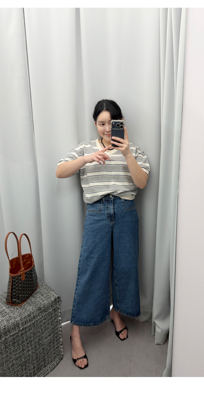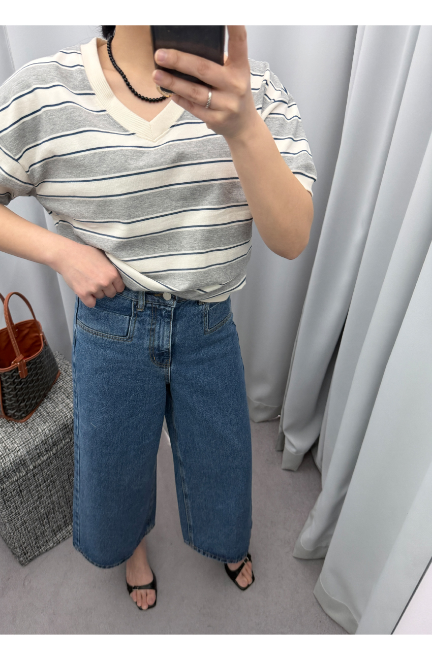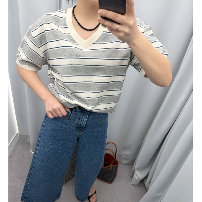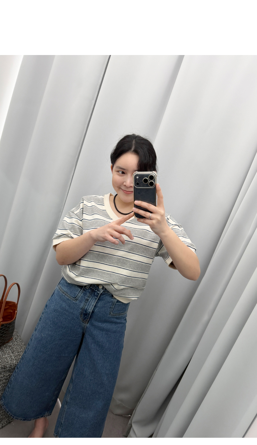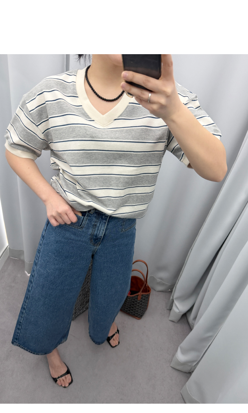 너무 깊지않은 브이넥 라인이 은은한 포인트가 되어드려요,