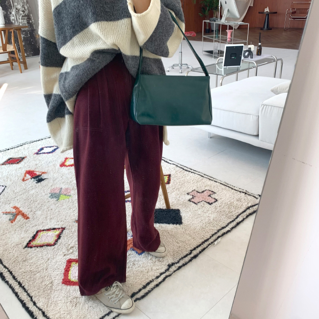 립니크 니트 _ 차콜스미카 슬랙스 _ 와인뉴픽 가방 _ 그린오픈넥 울 니트 _ 베이지스미카 슬랙스 _ 카키뉴픽 가방 _ 블랙베이퍼 워커 _ 블랙