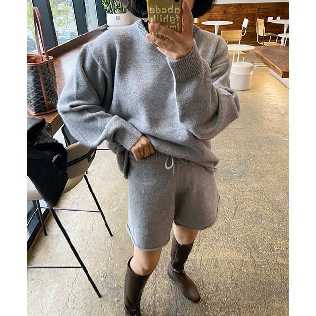 데일리한 라운드 니트와 밴딩 니트 숏츠가 세트로 제작되어 활용성은 물론,