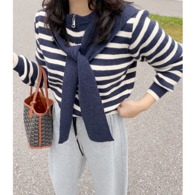 데일리로 활용하기 좋은 스트라이프 니트에요,