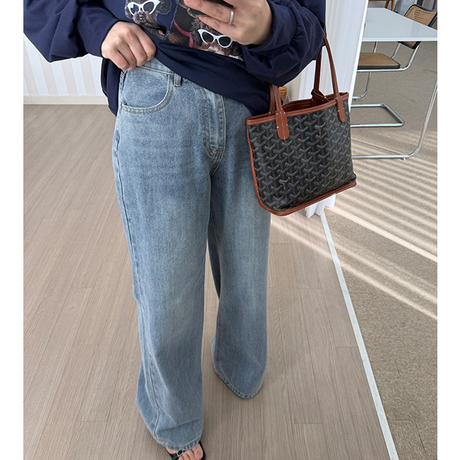 포멀한룩에서 캐주얼까지, 다양한 스타일링이 가능한 데님팬츠입니다,와이드한 일자핏으로 체형커버는 물론,신축성 없는 소재로 쉐입의 변형을 덜어들이구요,티셔츠 단독 하나에 코디해주어도 은은한 멋이 느껴지는 아이템으로 사심담아 추천드릴게요,컬러는 연청,진청,그레이,흑청 총 4컬러로 진행되구요,사이즈는 S,M,L 총 3가지 사이즈로 준비해보았어요,평소 27사이즈 착용하는 저는 M사이즈로 착용해준 핏 이구요,개인마다 사이즈차이가 있으니,정확한 사이즈는 상세표를 참고해주세요