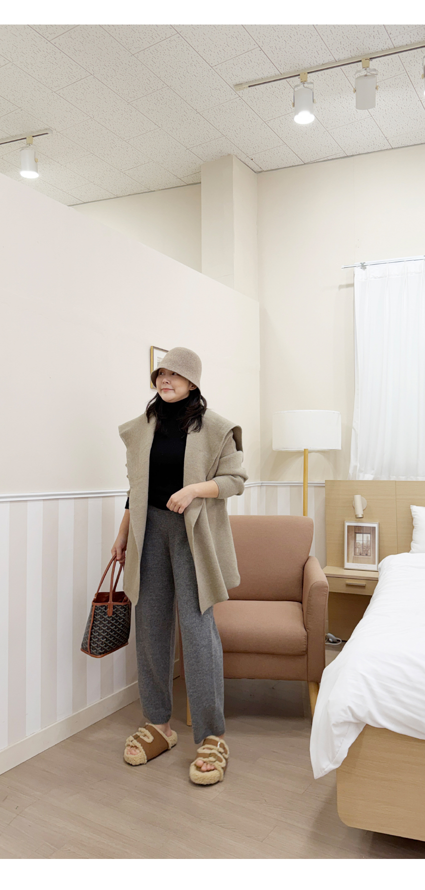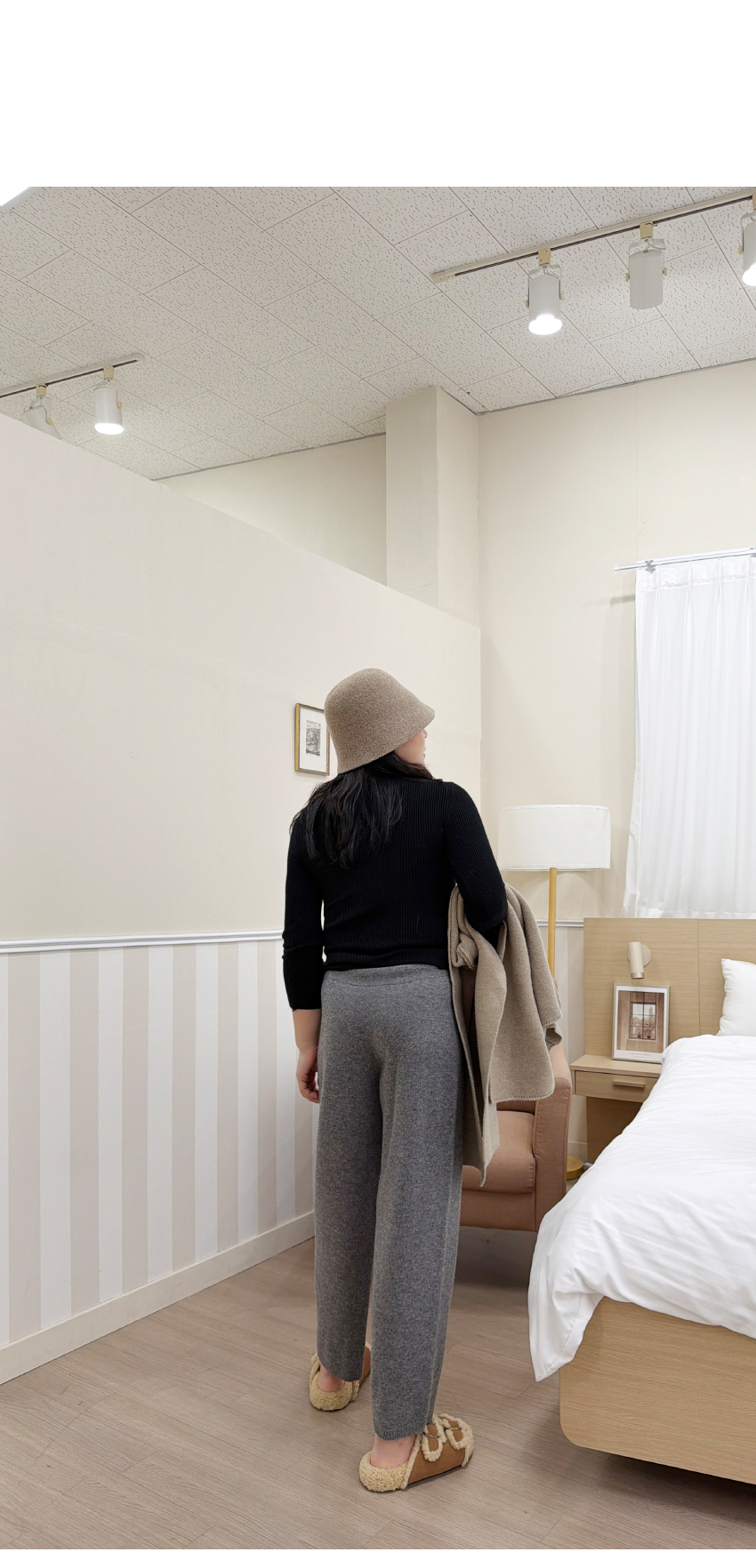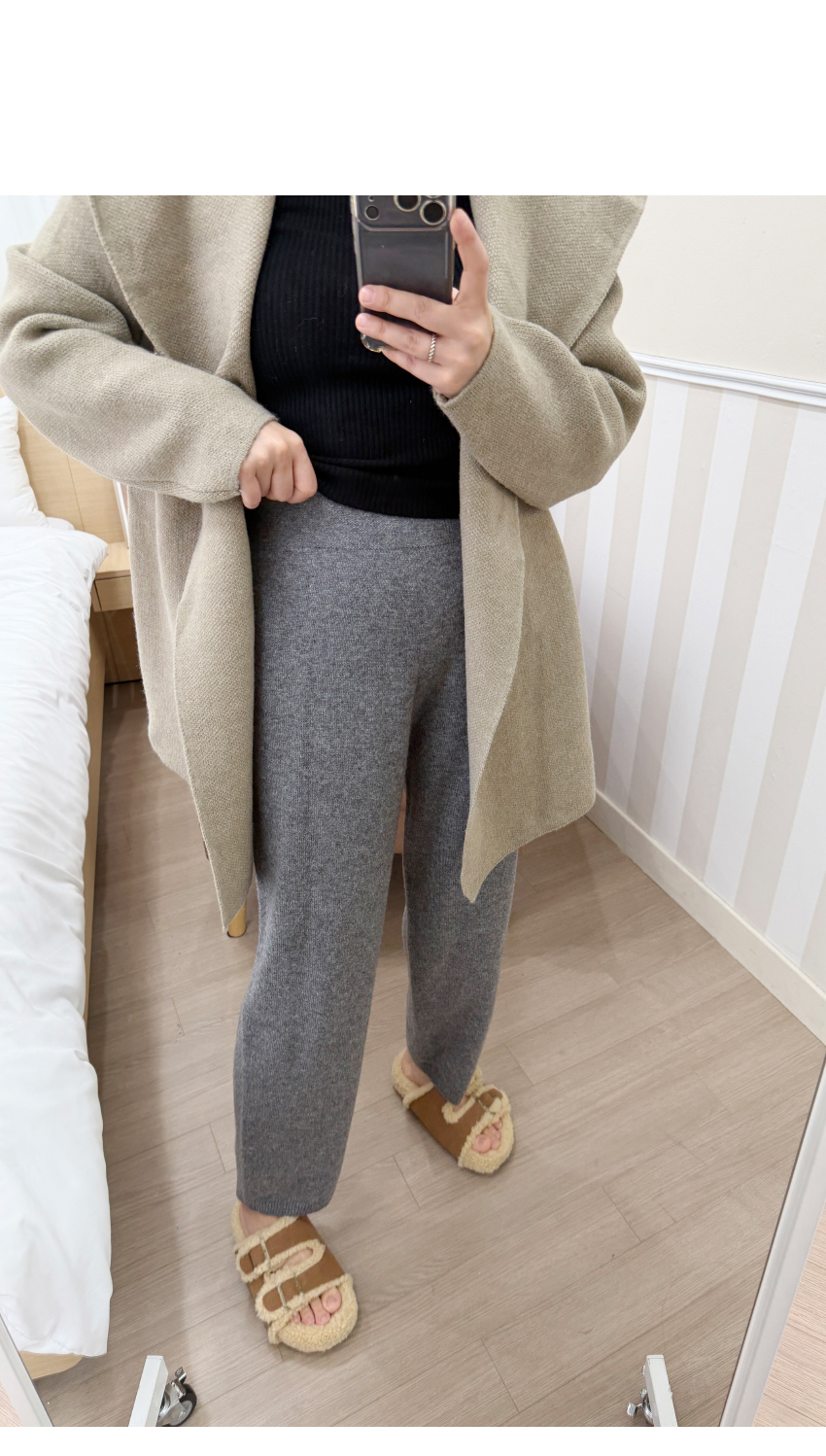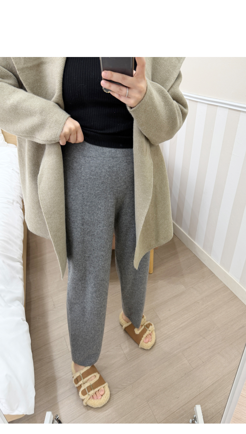 세련된 무드의 니트팬츠를 소개해드려요,스포티한 분위기를 어필해줄 멋스러운 제품인데요,편안해보이면서도 네추럴한 스타일링을 연출해주어개인적으로 추천해드리고 싶은 팬츠 중 하나예요,허리부분은 밴드로 제작되어보다 더 편안한 착용감을 선사해주며,파인울 100%소재로 보온성까지 갖추었어요,봄,가을 겨울시즌까지 멋스럽게 즐겨주세요!컬러는 블랙,그레이 총 2컬러로 입고해보았구요,사이즈는 프리사이즈로 25-30사이즈까지 추천해드리며,정확한 사이즈는 상세표를 참고해주세요!