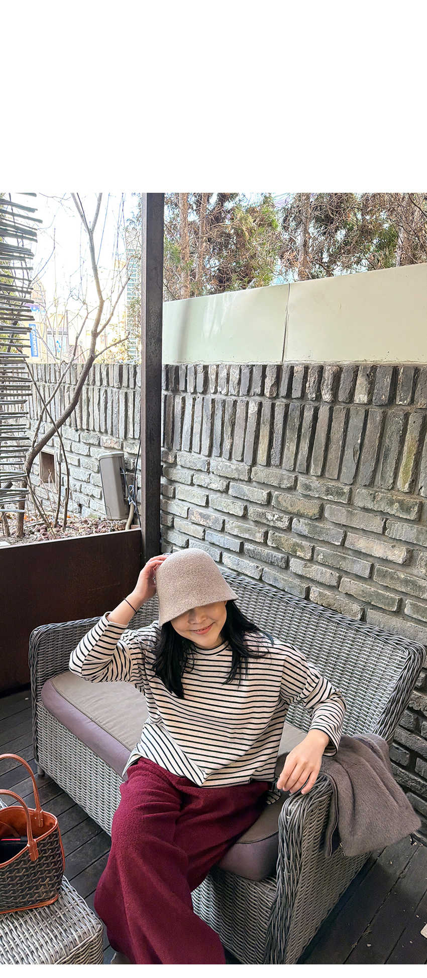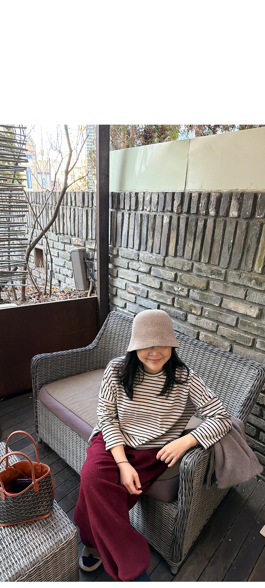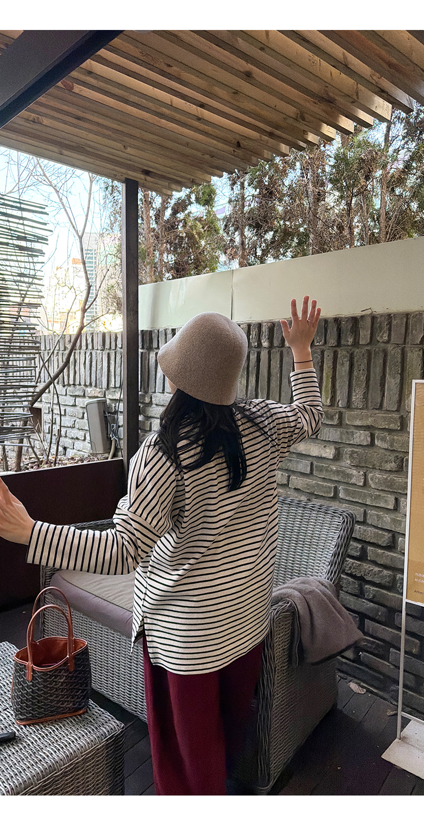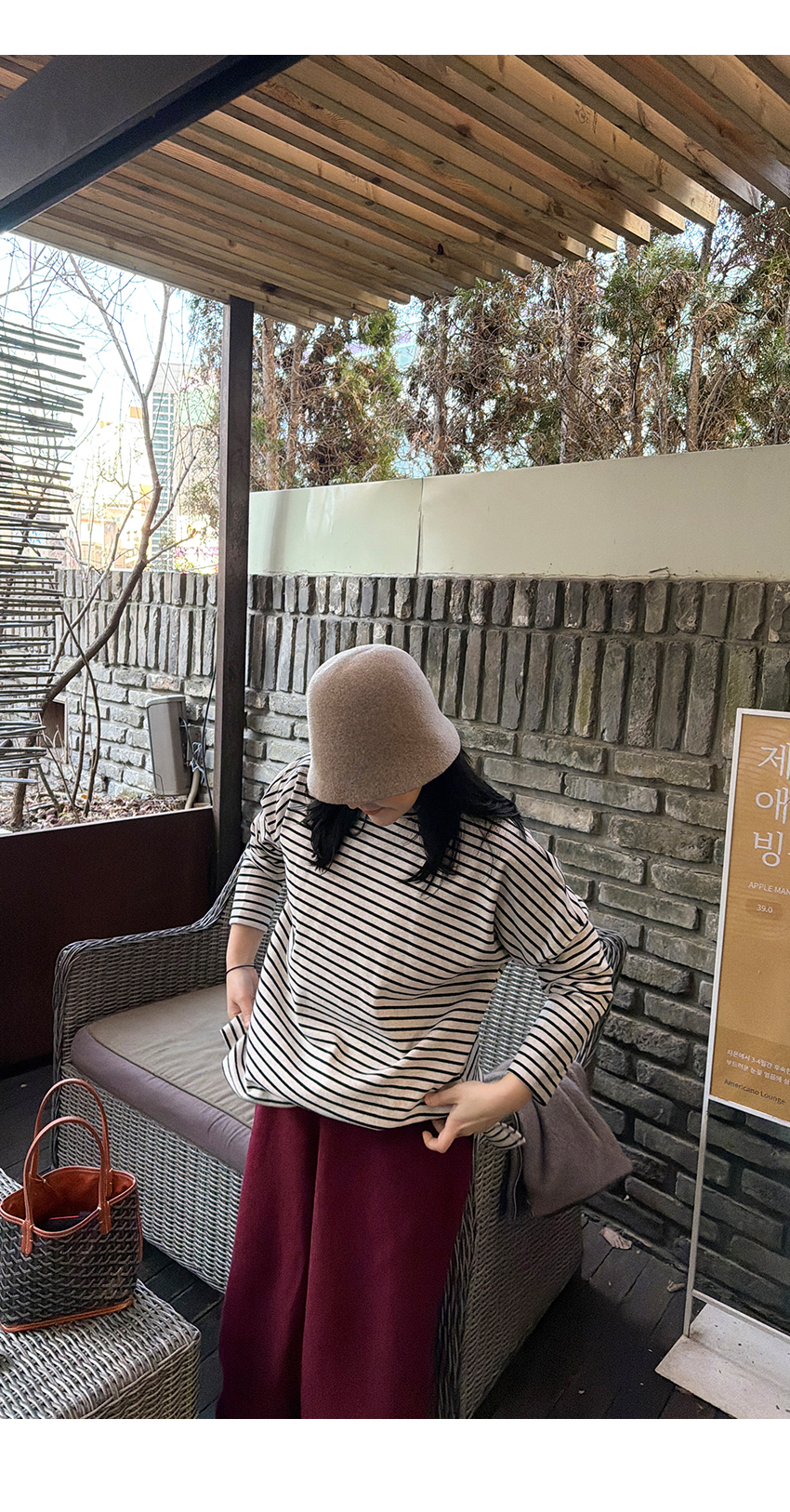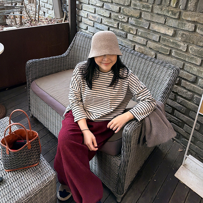 배색 단가라패턴이 유니크한 무드를 더해주었구요,