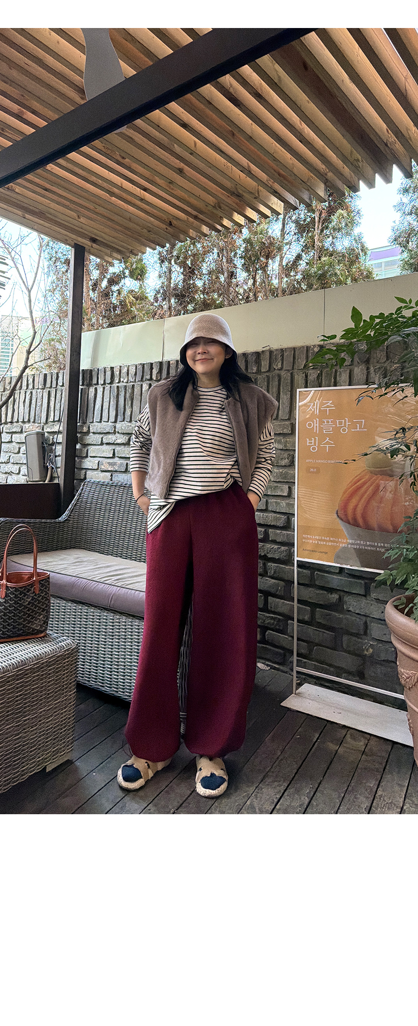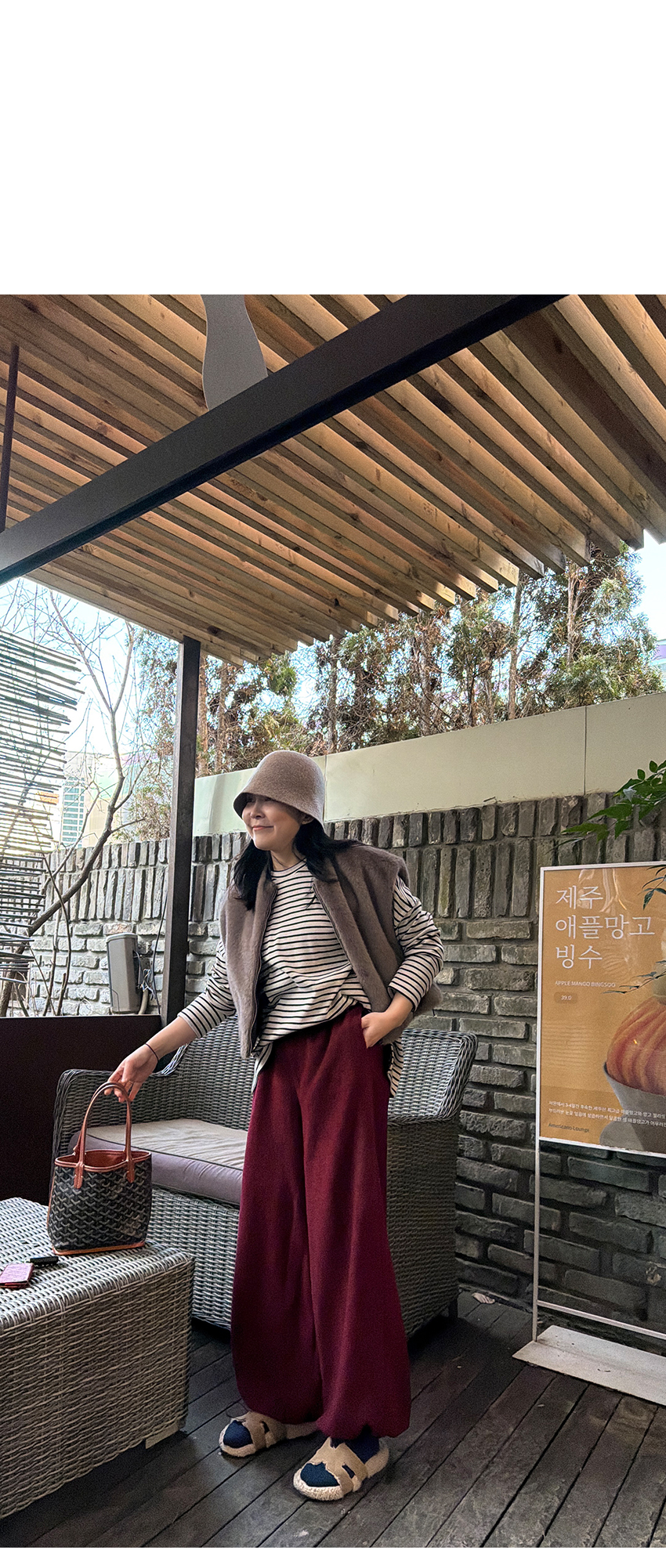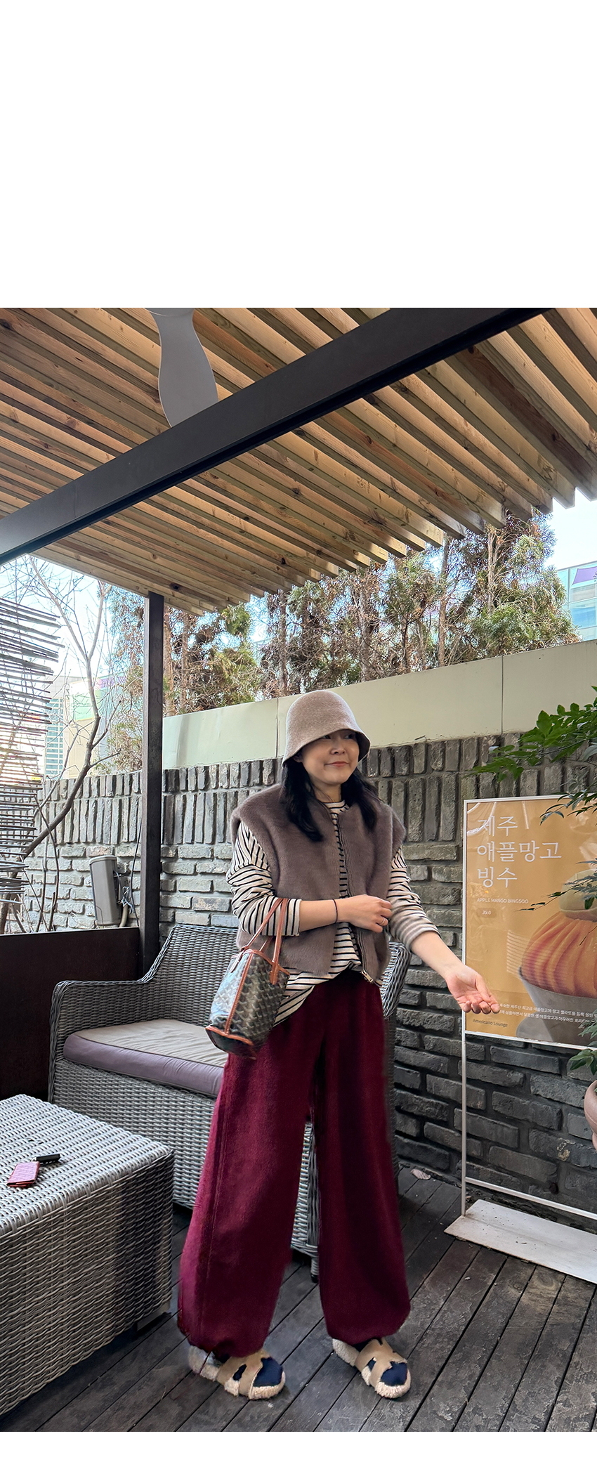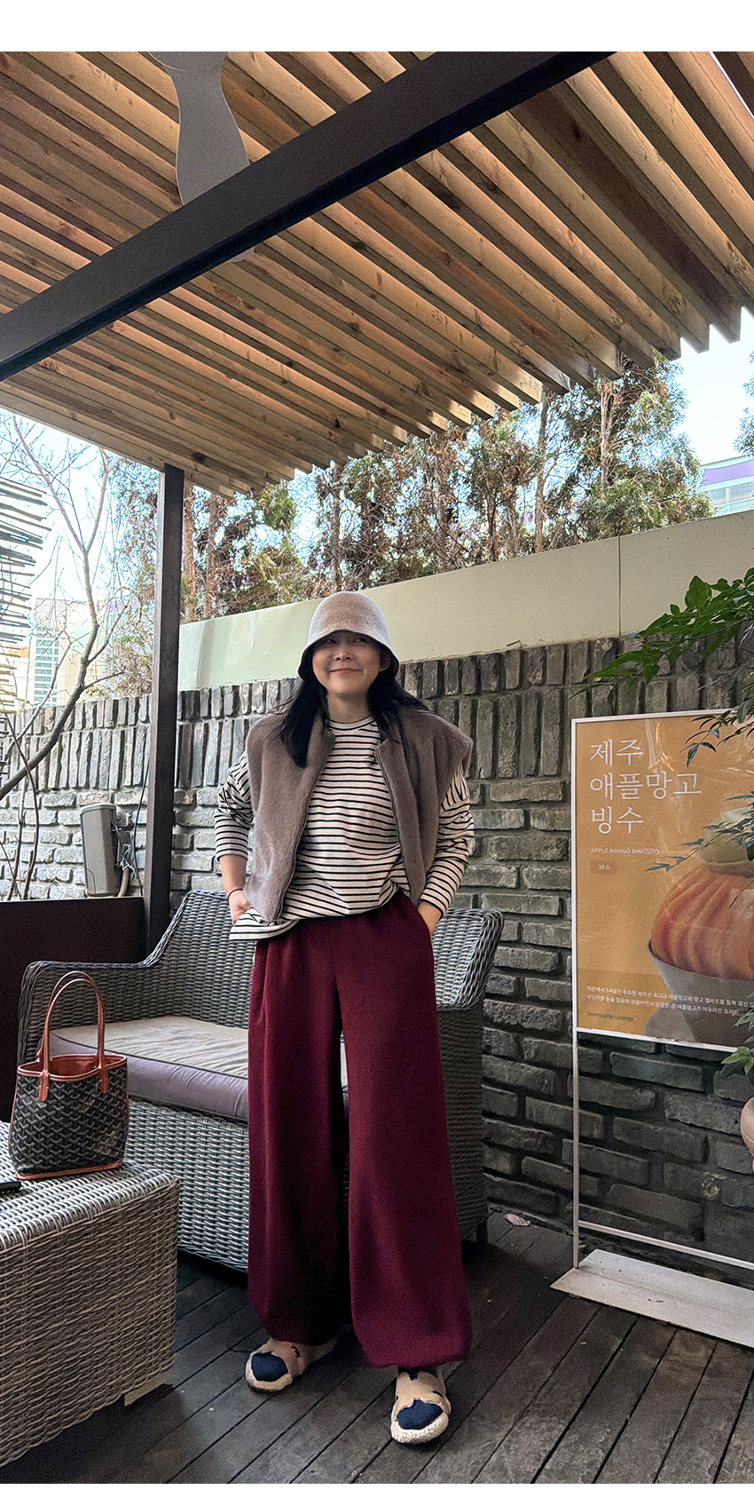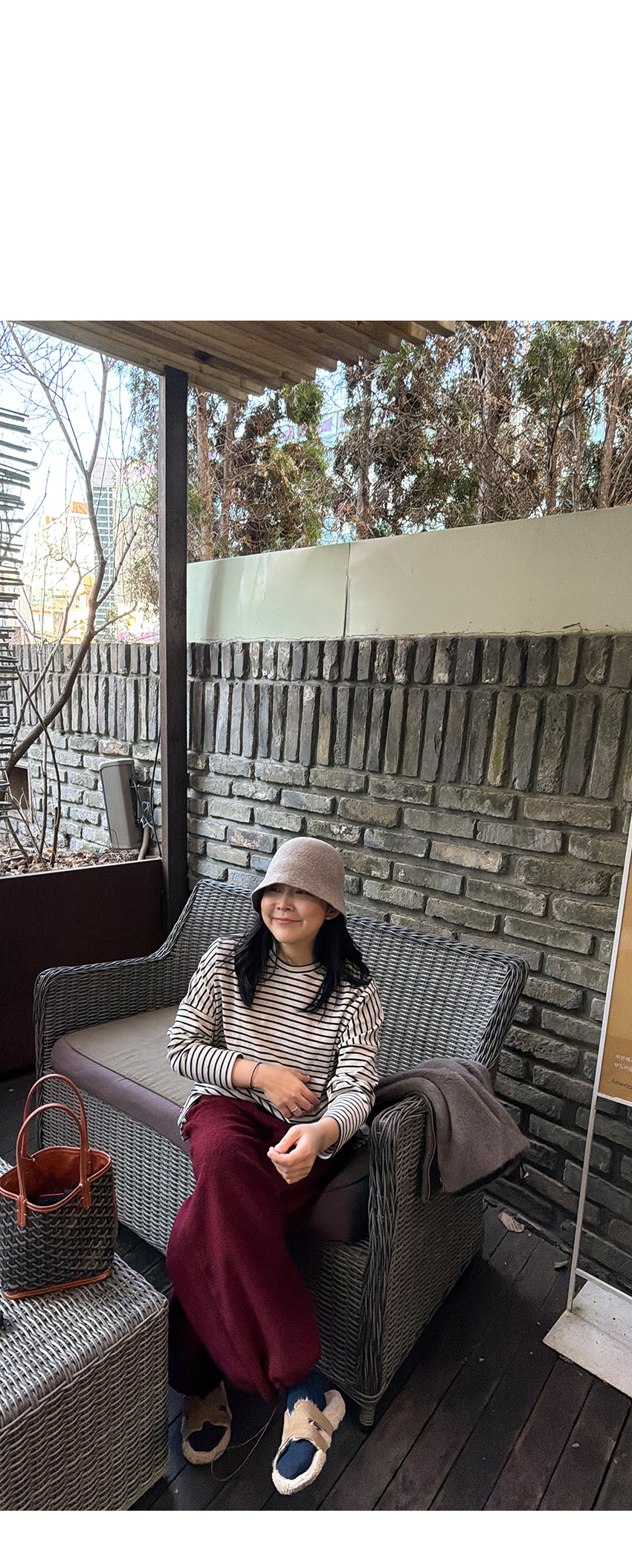 배색 단가라패턴이 유니크한 무드를 더해주었구요,