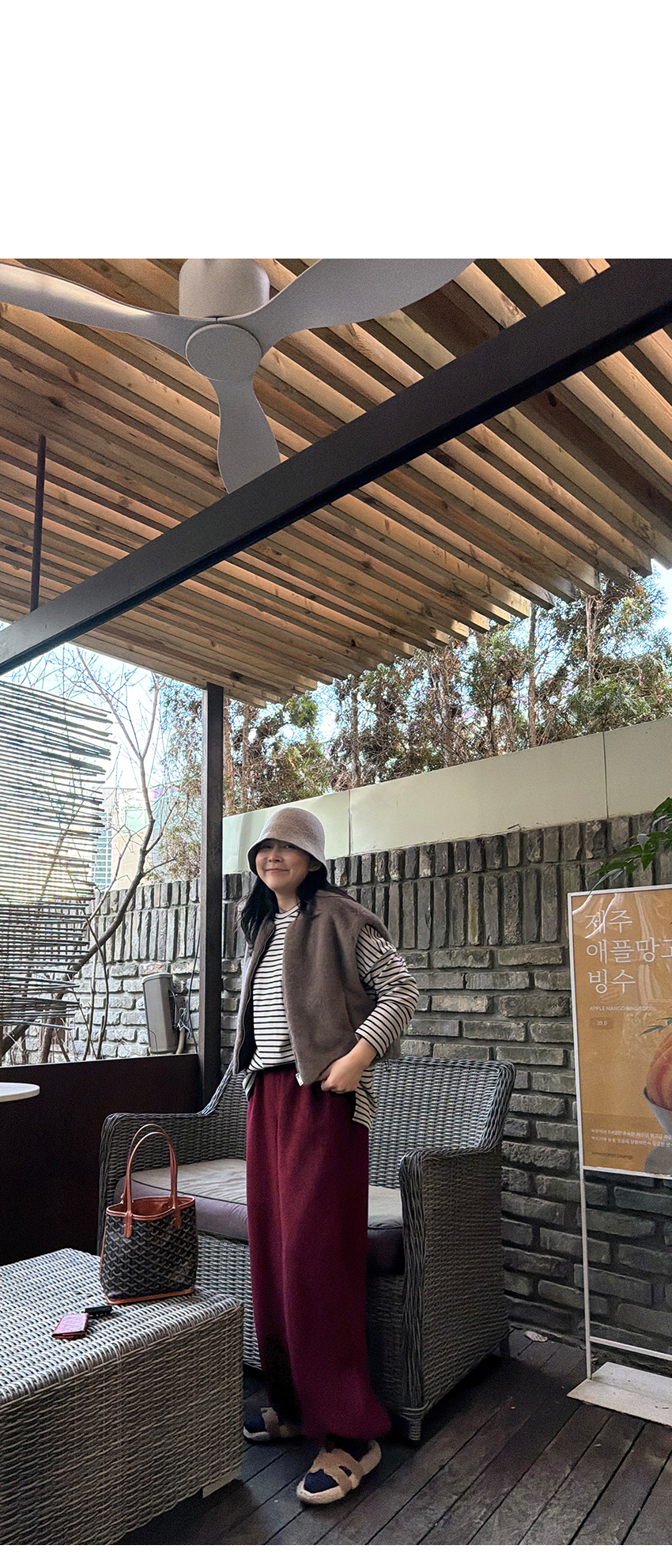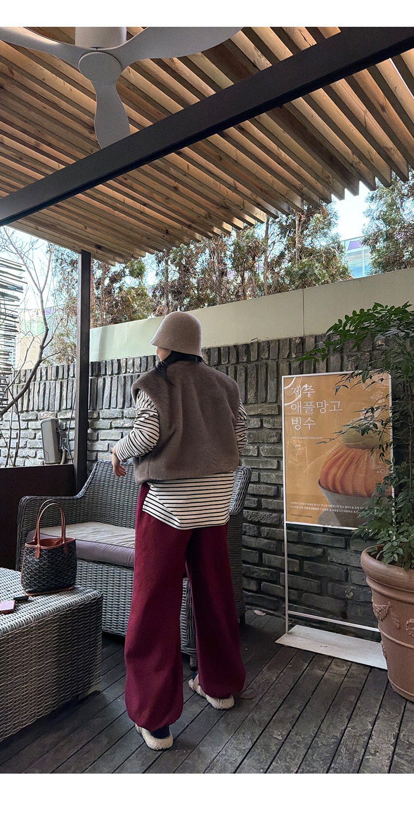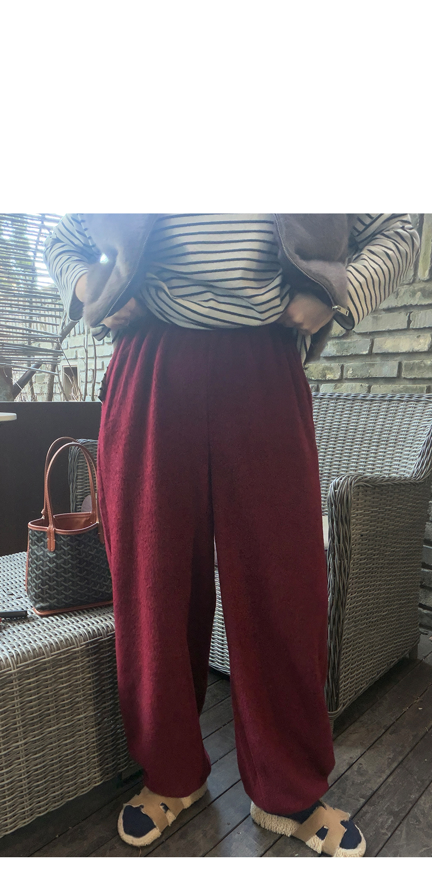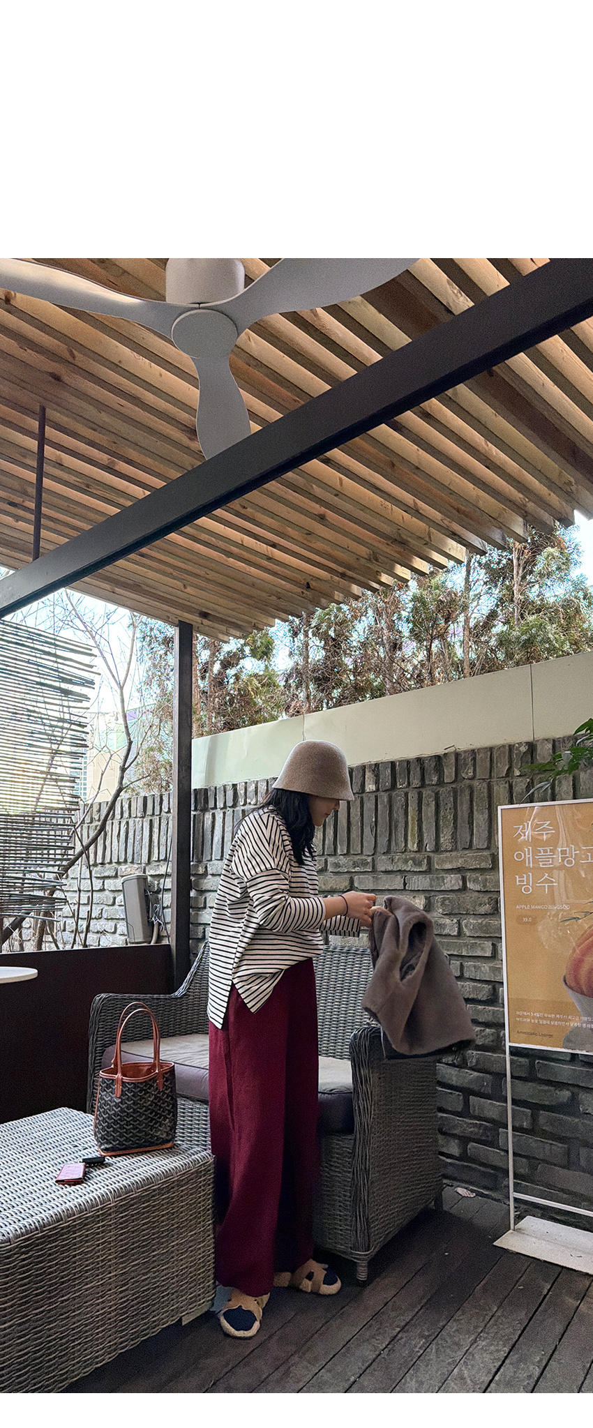 배색 단가라패턴이 유니크한 무드를 더해주었구요,