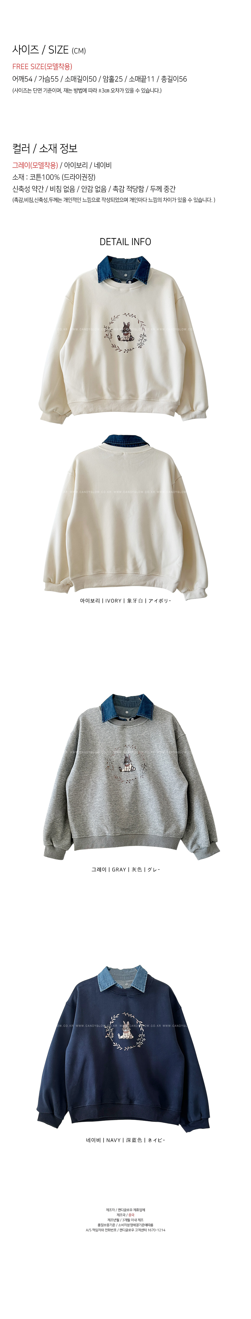 데님 카라넥이 단추로 이어져 탈부착이 가능합니다