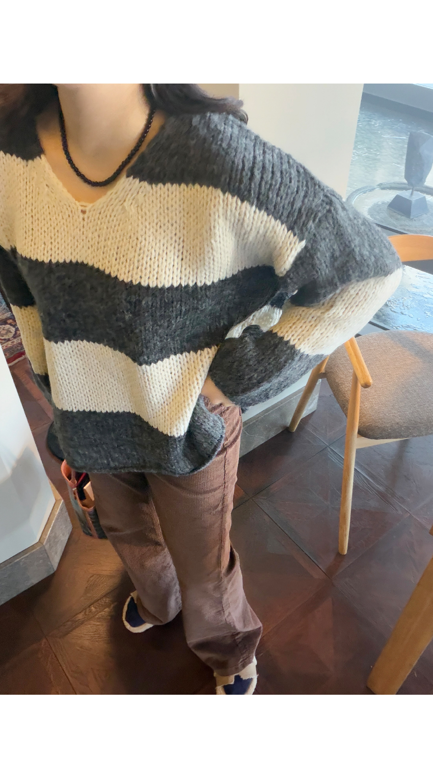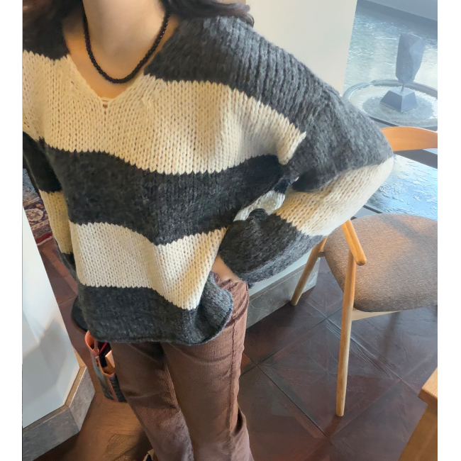 데일리로 활용하기 좋은 스트라이프 니트에요,