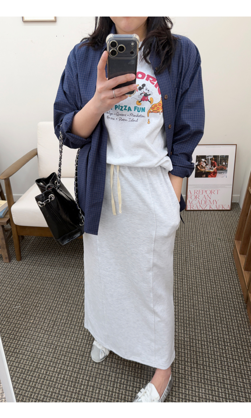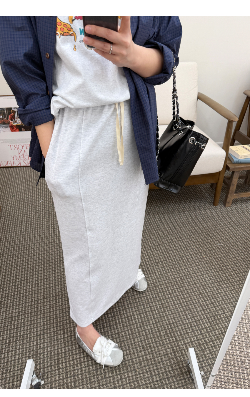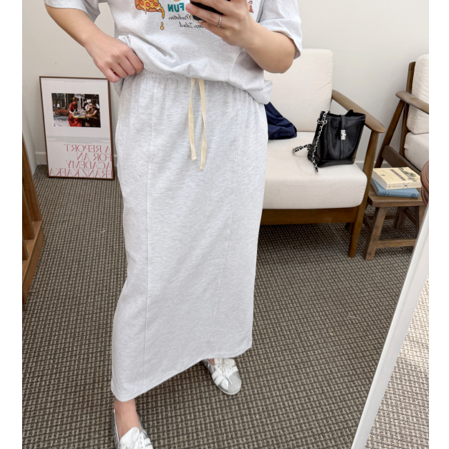 캐주얼스커트를 소개해드려요,데일리한 무드로 자주 손이가는 아이템입니다,롱한 기장에 H라인으로 떨어지는 실루엣으로네추럴하면서도 멋스럽게 매치되구요,허리부분이 밴드로 제작되어 편안함을 느끼실 수 있습니다,
