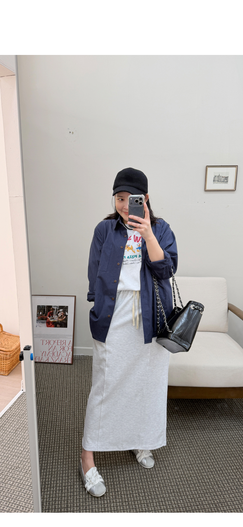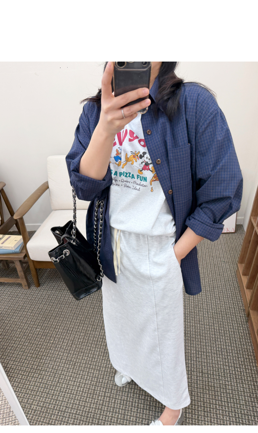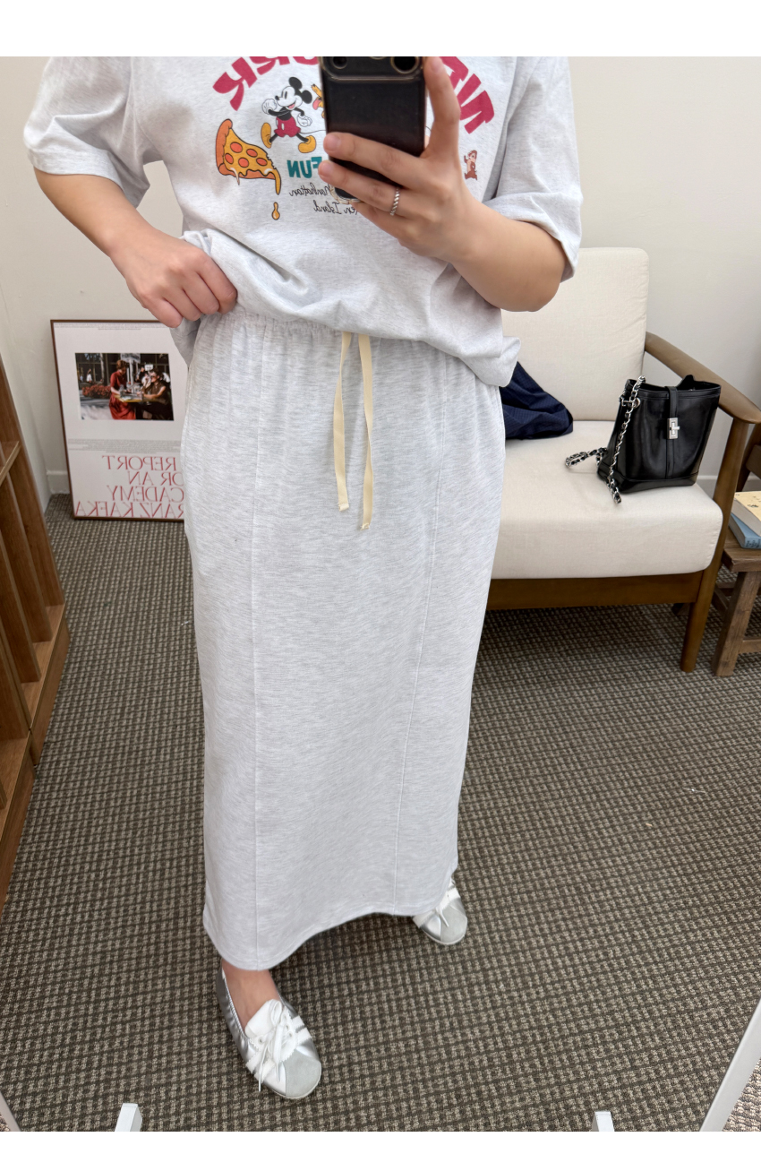 캐주얼스커트를 소개해드려요,데일리한 무드로 자주 손이가는 아이템입니다,롱한 기장에 H라인으로 떨어지는 실루엣으로네추럴하면서도 멋스럽게 매치되구요,허리부분이 밴드로 제작되어 편안함을 느끼실 수 있습니다,