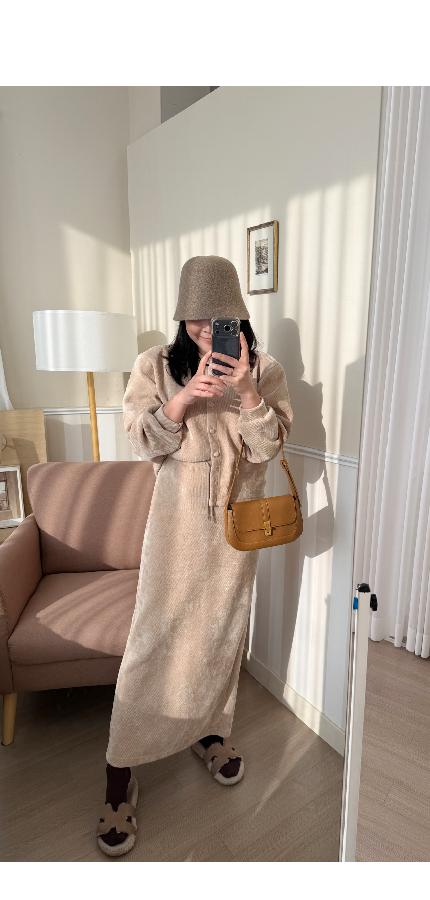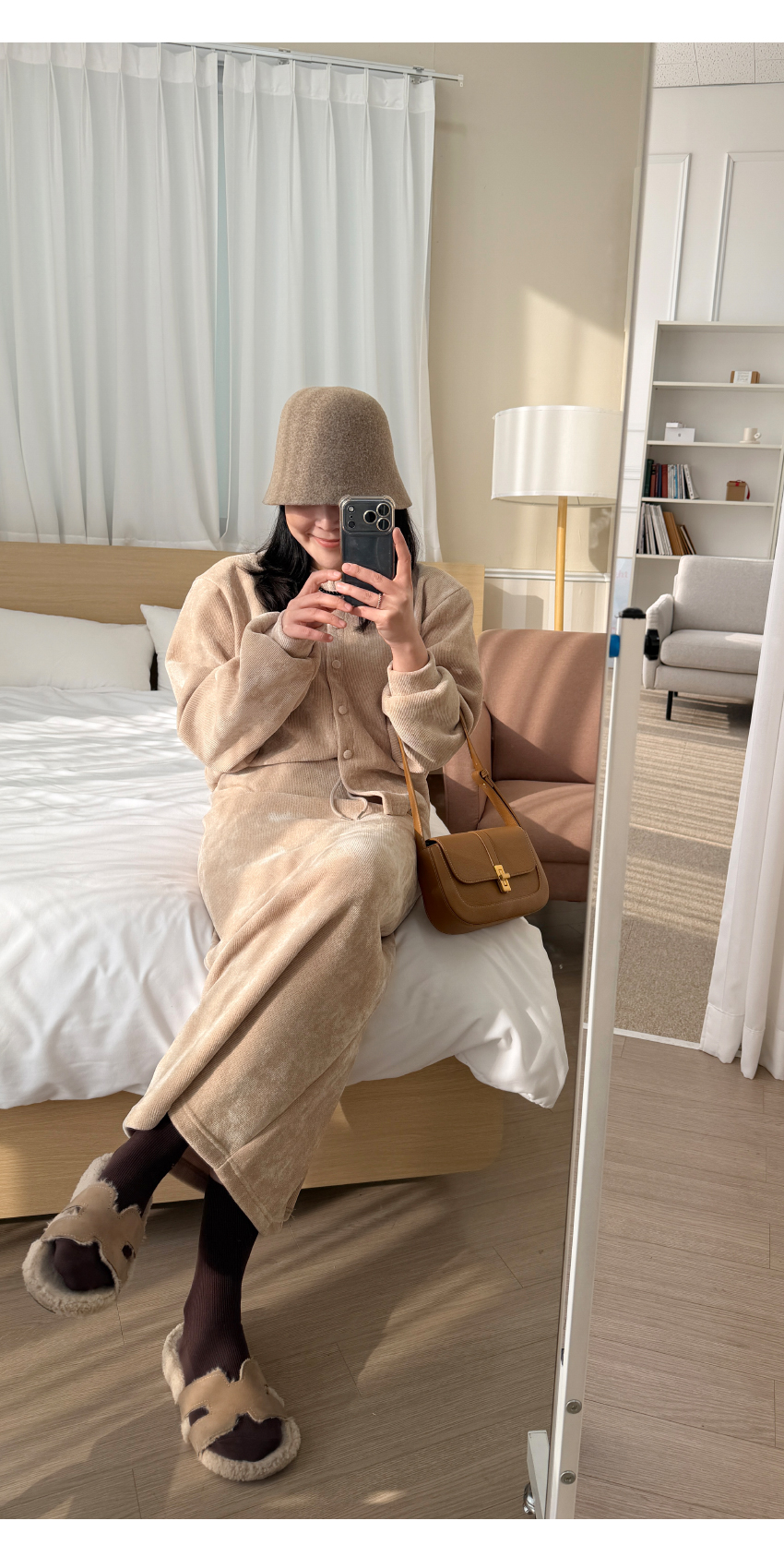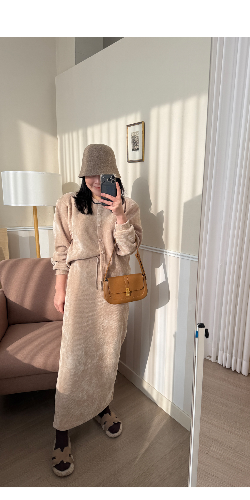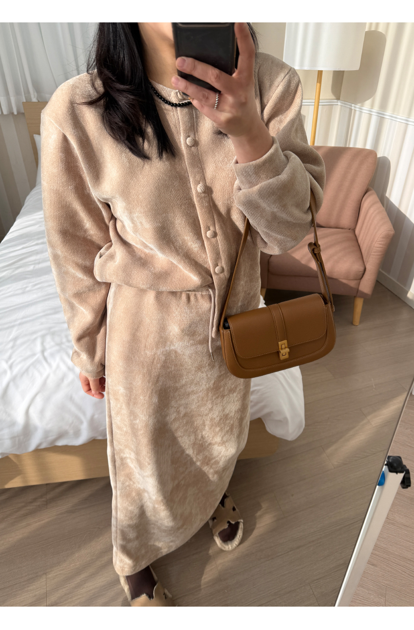 가디건과 밴딩 스커트가