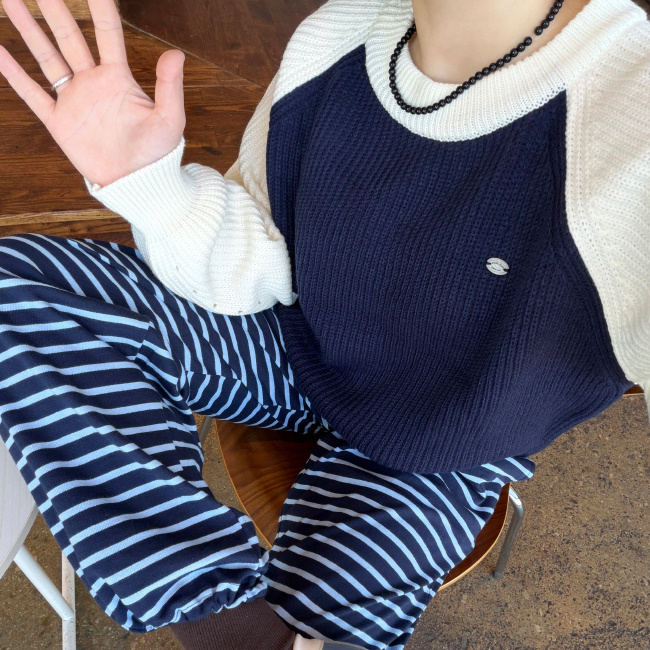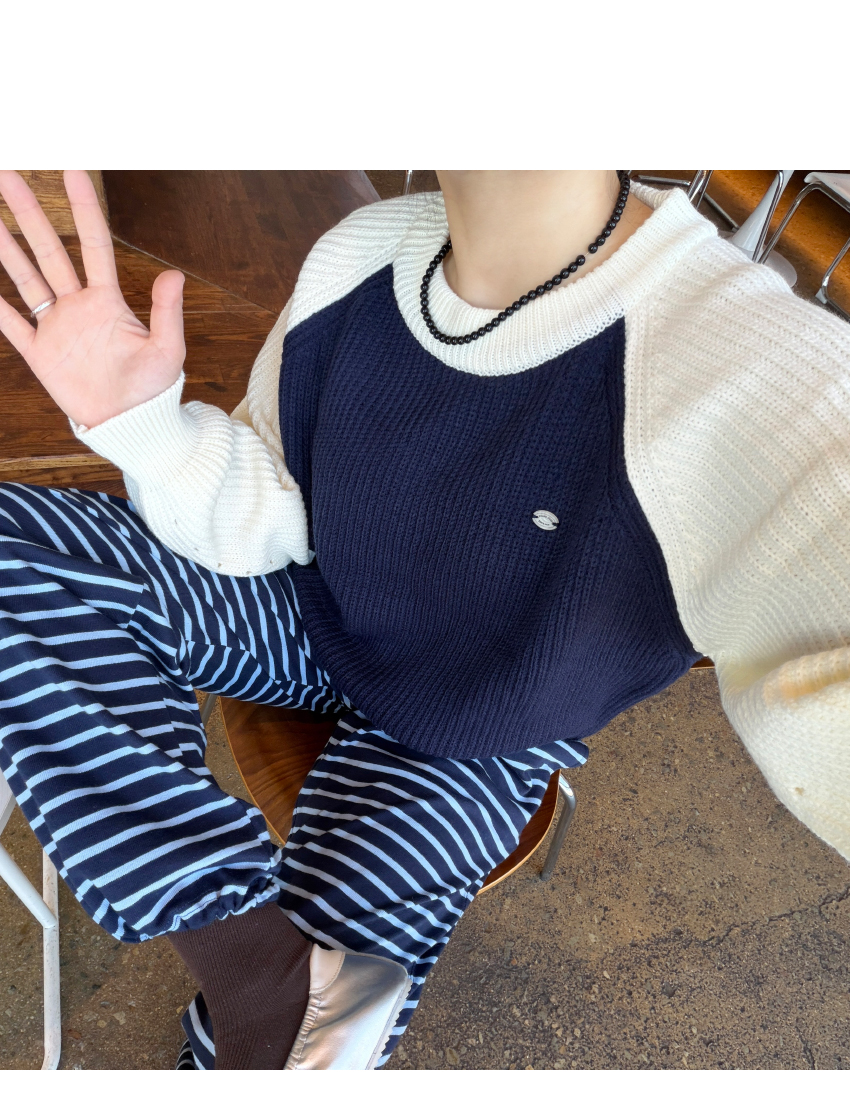 캐쥬얼한 무드의 배색니트를 소개해드려요,