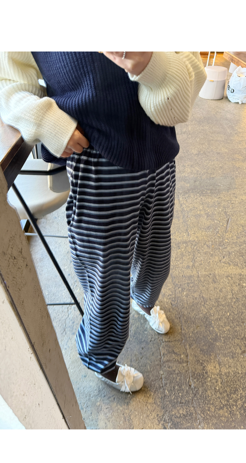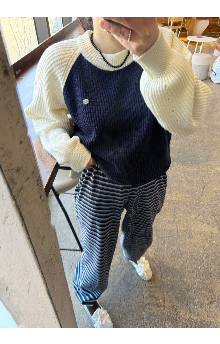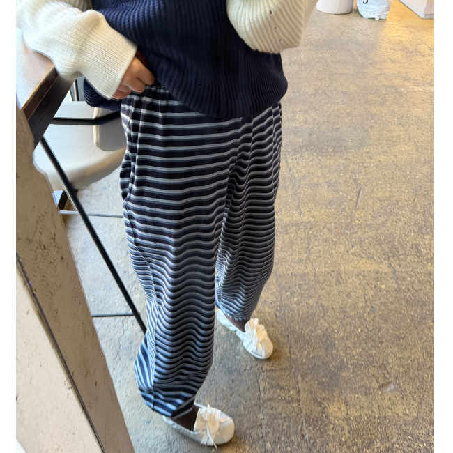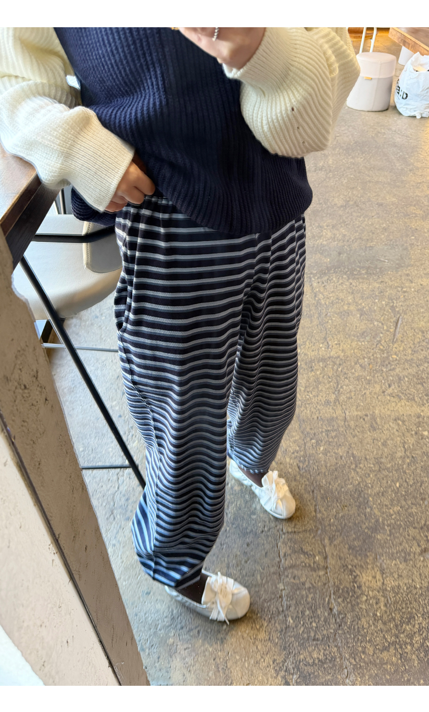 허리밴딩으로 편안한 착용감을 선사해주며,스트라이프패턴으로 은은한 포인트가 되어드려요,밑단 스트링이 마련되어 일자핏부터 조거라인까지 투웨이 실루엣이 가능하며,
