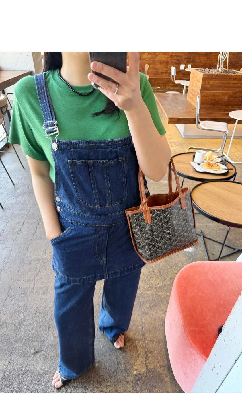 상의는 어떤 아이템과도 잘 어울릴 멜빵팬츠여서
