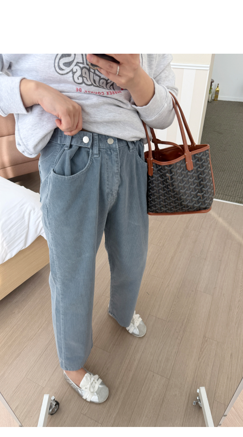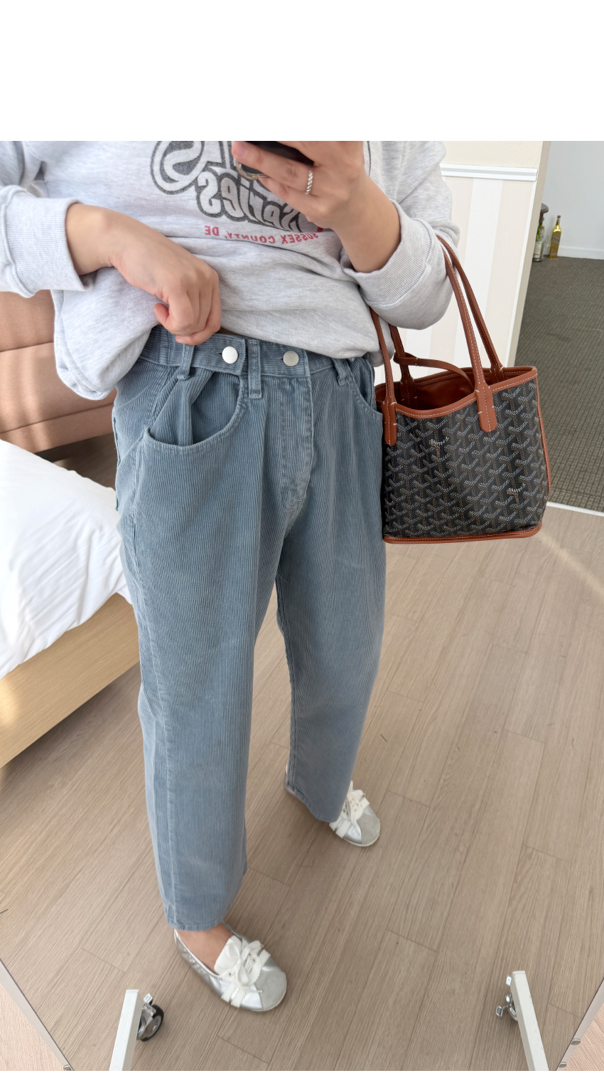 코듀로이소재로 데일리룩을 선사해주며,